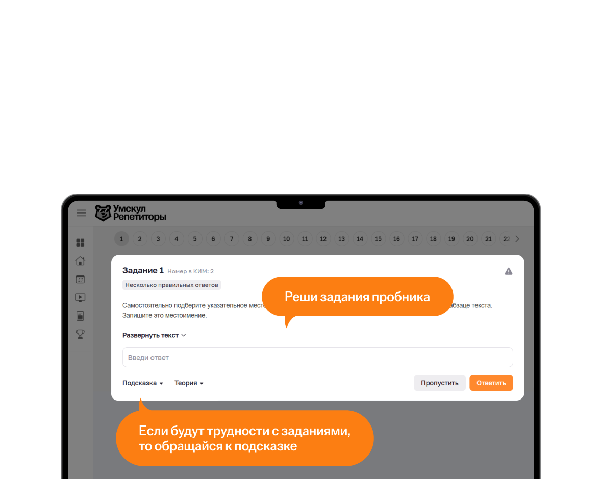 Да! В личном кабинете, во вкладке «Магазин», можно выбрать комфортное количество занятий для достижения цели. На платформе занятия делятся пополам — на занятия с репетитором и видеолекции. Это эффективная подготовка в формате «перевёрнутого класса». Можно выбрать 16, 32, 64 или 96 занятий и оплатить сразу на платформе.